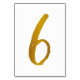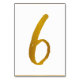 Table Number 6: This casual brush script table number card is set in a faux gold foil.