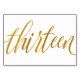 Table Number 13: This luxe elegant calligraphy table number card is set in a faux gold foil.