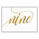 Table Number 9: This luxe elegant calligraphy table number card is set in a faux gold foil.