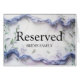 This is a reserved table sign card. It is elegant script calligraphy for fancy wedding party, chic bridal shower, engagement or anniversary. It is classy placement note cards with name of bride and groom family, VIP guests, bridesmaids, groomsmen, best man, maid of honour etc. Text and design can be customised for any invitation card.