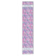 Customise this elegant table runner with a pattern of white blossom and blue budgerigars on a striking ping background with your family name.