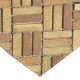 Bricks laid in parquet pattern is tiled. Bricks are in shades of yellow, orange, brown, and red.