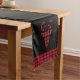 This holiday table runner is shown in Black with a festive Christmas buffalo plaid deer head print.