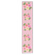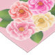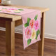 This table runner is shown with a pink background colour and has a pretty roses print.