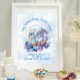 The "Blueberry Wishes and Gnomery Kisses" baby shower table sign features a playful phrase that can be personalised, set against a light blue clouds background. Don’t forget to add your names and the date to make it unique! Someone would love to keep it as a souvenir. The illustration is charming and magical, with a delightful combination of blue and purple hues. This design showcases a whimsical blueberry and gnome theme, incorporating adorable images of juicy blueberries alongside enchanting gnomes, which is sure to inspire joy and wonder among your guests. Make your baby shower unforgettable! Be sure to explore our collection for more fun ideas to celebrate this special occasion.