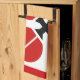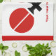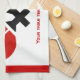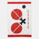 Table tennis ping-pong rackets and ball black, red custom kitchen towel design displaying a minimalist pictogram icon of red black table tennis rackets and ball and your text on white background with red border.
