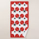 Table tennis ping-pong rackets and ball black, red table tennis bathroom towel set with monogram. It showcases a minimalist pictogram icon of red black table tennis rackets and ball and has a red border. The hand towel includes a striped pattern in red, black and white and the washcloth is of solid red colour with your monogram.