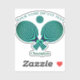 Retro style design of two table tennis rackets and a ping pong ball in turquoise green with a hypnotic pattern on a yellow background for ping pong lovers and tabletennis players.