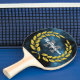 A grand Ping Pong paddle for those who really enjoy the sport. The design features an artistic, blue image of outer space holding a gold victory wreath, your monogram and name. All text is easily changed by using the template. For other changes (different type font, colour, size or placement AND/OR to resize or reposition the wreath) select "Personalise this template" then select "Edit using Design Tool." Note that one option you have is to have red or black rubber on the back side -- in which case the paddle would be printed on only one side. See Options.