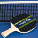 A black ping.pong_paddle with a blue and green stripe to personalise with the name of the player