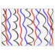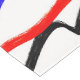 The flowing red, blue, and black lines add movement and a modern accent to the dining table, creating an atmosphere like an art gallery.