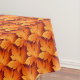 Cotton tablecloth shown in a deep berry colour background with a festive autumn leaves print design.