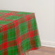 This Christmas holiday cotton tablecloth is shown in a festive green and red plaid print design.