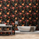 A vibrant watercolor pattern capturing the essence of fall. This design features classic autumn elements like plump pumpkins, colourful maple leaves, and delicate berries against a dark background, perfect for adding a touch of cosy seasonal charm to any product.