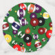 In the 19th century a poolroom was a horse race betting parlour. Pool tables were installed so the bettors could pass time between horse races. Billards, or pool, is the descendant of a game similar to croquet that was played in 15th-century Europe. Though we don't know for sure, it is strongly suspected that billiards came to America with Dutch and English settlers. By the 1700's, skilled cabinet makers were crafting beautiful tables, though the equipment was, otherwise, quite primitive. Fifteen-ball pool came on the scene in the late 1800's and grew in popularity through the 1940's. Billiards was revived in 1961 with the release of the movie THE HUSTLER. It enjoyed another surge in the mid 1980's with the release of the movie sequel, COLOR OF MONEY. Since that time, there has been an evolution of the environs in which we find pool tables -- they're in restaurants and night clubs and sports bars, allowing pool to find a modern audience and new generations of enthusiasts. This marvellous design is layers of billiard balls in varying sizes for greater depth. They are scattered all over a "green felt" backdrop on one side of the small, medium and large table confetti. On the other side, the bold, yellow ONE ball . . . making this tablefetti an excellent choice for 1st birthdays, anniversaries . . . or any other noteable first.