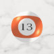 In the 19th century a poolroom was a horse race betting parlour. Pool tables were installed so the bettors could pass time between horse races. Billards, or pool, is the descendant of a game similar to croquet that was played in 15th-century Europe. Though we don't know for sure, it is strongly suspected that billiards came to America with Dutch and English settlers. By the 1700's, skilled cabinet makers were crafting beautiful tables, though the equipment was, otherwise, quite primitive. Fifteen-ball pool came on the scene in the late 1800's and grew in popularity through the 1940's. Billiards was revived in 1961 with the release of the movie THE HUSTLER. It enjoyed another surge in the mid 1980's with the release of the movie sequel, COLOR OF MONEY. Since that time, there has been an evolution of the environs in which we find pool tables -- they're in restaurants and night clubs and sports bars, allowing pool to find a modern audience and new generations of enthusiasts. This marvellous design features the bold, orange-striped THIRTEEN ball . . . making this tablefetti an excellent choice for 13th birthdays, anniversaries . . . or any other noteable thirteenth. The reverse is a coordinating solid orange featuring text you may personalise to your special "thirteenth" event.