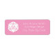 A petal pink return address label is decorated with a white twenty-sided die on the left and sample text on the right for customising to make it your own.