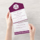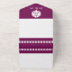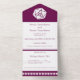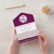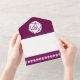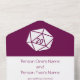 Bring touch of geeky fun to your event with this all-in-one wedding invitation and RSVP card. On the inside you will find a white twenty-sided die on a rich wine background above a section with some sample text that can be customised for your special day. The lower section of the invite features a removable, postcard sized piece that has some sample RSVP text sitting above a wine border with pattern of d20s scattered across the bottom. Outside, a similar border of twenty-sided dice on wine can be found below the areas where you would add stamps, standard, and return addresses for both the invitation as a whole and the returnable RSVP section. The flap used to fold over and seal the card has a single d20 on a rich wine background with a sample set of initials that you can customise for a final personal touch that shows off your love for tabletop gaming and each other. Be sure to check out the rest of the Tabletop Chic in Wine set for other coordinating products, including return address labels.