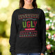 “Have yourself an ugly sweater Christmas.” Celebrate the holiday season in “style” with this unique, fun sweatshirt! A cute, Nordic knit fair isle pattern of whimsical trees, reindeer, ornaments, along with playful “sweater” typography in red, green and aqua blue, overlay a black background. Choose from numerous shirt styles and background colours. Feel the warmth and joy of the holiday season whenever you wear this. A funky, trendy way for you to usher in the holidays!