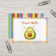 Adorable “Diaper Raffle" ticket design with cute avocado front and fiesta theme back.