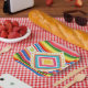 Adorable “Taco ’Bout a Baby” fiesta baby shower design featuring bright orange, yellow, pink blue and green with colorful serape accents. Perfect for a fun Mexican-themed celebration.