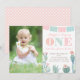 Pastel pinks and greens "Mexican" theme first birthday photo card invitation