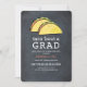 This simple and modern " taco 'bout a GRAD " virtual/online/zoom graduation party invitation features a black chalkboard / blackboard background with a pair of tacos with simple and bold lettering. The reverse side features a burgundy background with white arrow patterns. Change the background colour and personalise for your needs. You can find more matching products at my store.