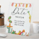 Calligraphy taco 'bout love actus guitar boho wedding shower, bridal shower, couple shower date night jar sign in a bohemian style with a gorgeous flowery cactus arrangement, flowers, and a cactus arrangement