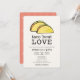 This simple and modern " taco 'bout LOVE " couples shower invitation features a light beige background with two tacos with simple and bold letterings. The reverse side features a terracotta red background with white arrow patterns. Change the background colour and personalise for your needs. You can find more matching products at my store.
