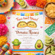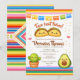 Adorable “Taco ’Bout Twins” fiesta baby shower invitation featuring cute kawaii tacos, avocado, cactus, and llama characters with colorful serape accents. Perfect for a fun Mexican-themed celebration for the mom to be expecting twins!.