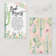 Pastel coloured fiesta themed taco bout a baby baby shower book request insert featuring flowering cactus and Mexican banner in pink and mint.
