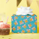 funny tacos figure say hello, tiled pattern, cyan blue background.