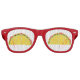 Cool crispy tacos decorate these funny red mexican food sunglasses for taco lovers to wear in to go get fast food for a party. Cute party favour glasses.