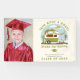 "Taco Bout A Grad" graduation theme featuring illustration of taco cream truck camper with cactus and papel picado. Personalise the photo at left.