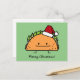 Taco wearing Santa Hat Christmas shell meat salsa Holiday Postcard