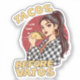 Tacos Before Vatos – because priorities matter! This bold and cheeky Tacos design is made for every Mexican American woman who knows that Taco Tuesday is sacred and that no vato comes between her and her taco. Featuring a vibrant design inspired by Chicanas and their unapologetic love for tacos, this Funny Taco sticker is the ultimate Taco Lover Gift for your bestie, your hermana, or yourself.