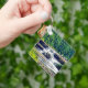 The key chain is made of metal and really sturdy. The flower design is really cheerful. The logo and colors are clear and crisp!