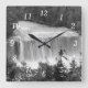 Wall clock featuring a black and white cloudy and rainy day photo of the beautiful Tahquamenon Upper Falls. The Tahquamenon Falls are two different waterfalls on the Tahquamenon River. Looking for more prints or products? Feel free to visit my store: http://www.zazzle.com/timelessmomentsphtgy