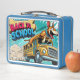 This cheerful lunchbox showcases a playful cartoon dog with a wagging tail excitedly heading to school. The design captures the joy and anticipation of a new school year. "BACK TO SCHOOL" is written in a fun bold font. Perfect for energetic dog lovers.