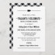 Casual but sophisticated barbecue themed "Tailgate & Celebrate" couples wedding shower invitation for a couple features a little pig motif, custom text in western style fonts, and a scroll and stripe design elements. Black and white design and text with coordinating gingham summer tablecloth plaid pattern on the back of the card.