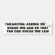 Tailgating: Asking Me to Break the Law Bumper Sticker