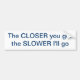Tell that tailgater - "The closer you get, the slower I'll go" with this bumper sticker on your car!