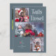 Cute and funny Christmas holiday photo template card for dog owners featuring a typography text at the top that says "tails & tinsel" with 3 photos of your dog(s). The background is slate blue.