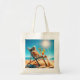 Canvas bag with a fun picture of a skeletCanvas bag with a fun picture of a skeleton resting on the beachon resting on the beach
