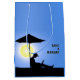 "Take a Break!" Man beach umbrella laptop computer work vacation digital illustration