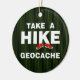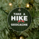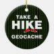 Take a hike, geocache text, with the K in hike wearing sneakers is a funny geocaching design for cachers at birthdays, holidays and geocaching events.