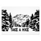 Monochrome illustration with view to mountains and snowy winter wood drawing in woodcut style