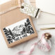 Monochrome illustration with view to mountains and snowy winter wood drawing in woodcut style