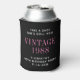 Fun black can cooler party favour for her 40th birthday party. "Take a Shot She's Still Hot" is written in white typography and "Vintage" and the year she was born is in elegant pink typography. Personalise with her name and party date.