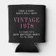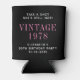 Fun black can cooler party favour for her 50th birthday party. "Take a Shot She's Still Hot" is written in simple white typography and "Vintage" and the year she was born is in elegant pink typography. Personalise with her name and party date.